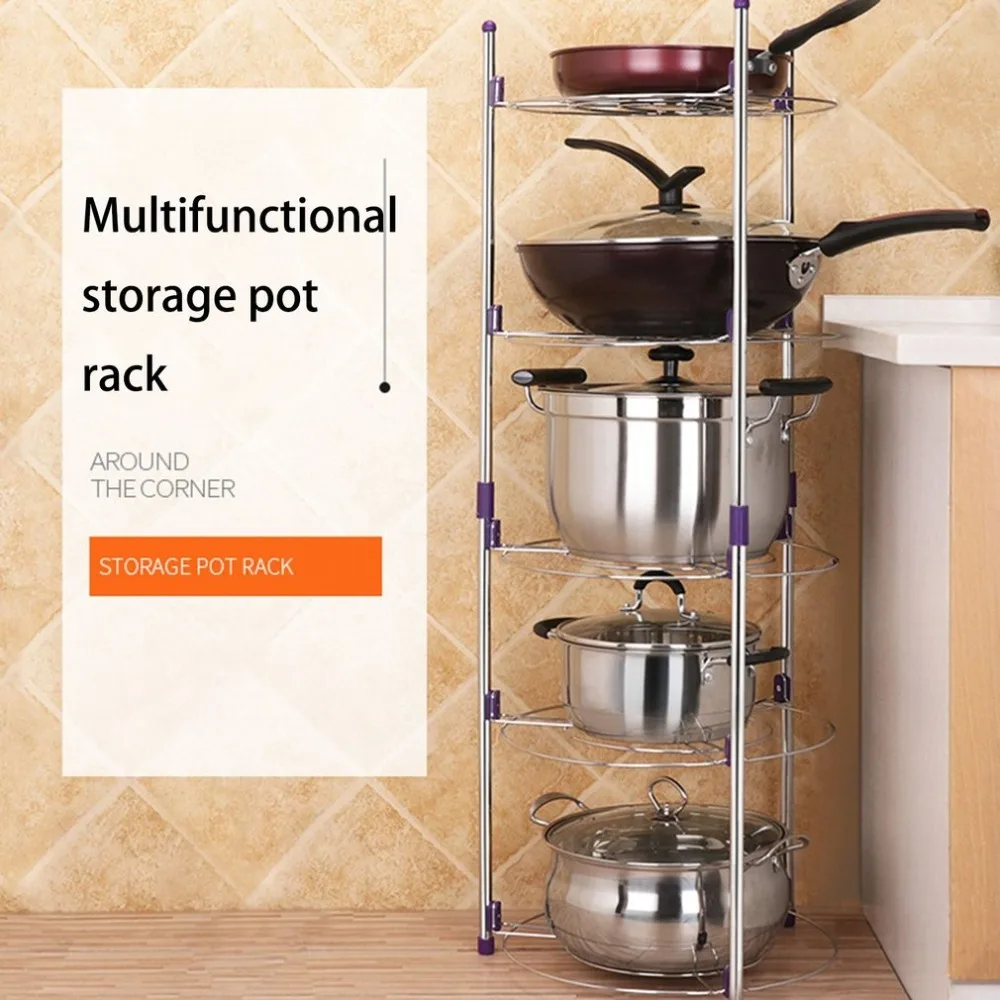 معلومات اضافية 2/3 طبقة متعددة الوظائف المنزل المطبخ تخزين حامل دائم الفولاذ المقاوم للصدأ المعادن وعاء الرف عموم غطاء حامل أرفف الرف