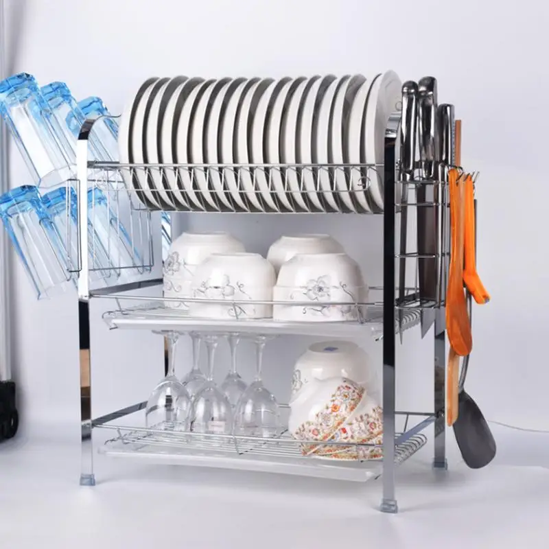 معلومات اضافية متعددة الوظائف تخزين الرف تجفيف ثلاثة طبقة الكروم لوحة استنزاف رف المطبخ تخزين الرف مع لوحة تفريغ