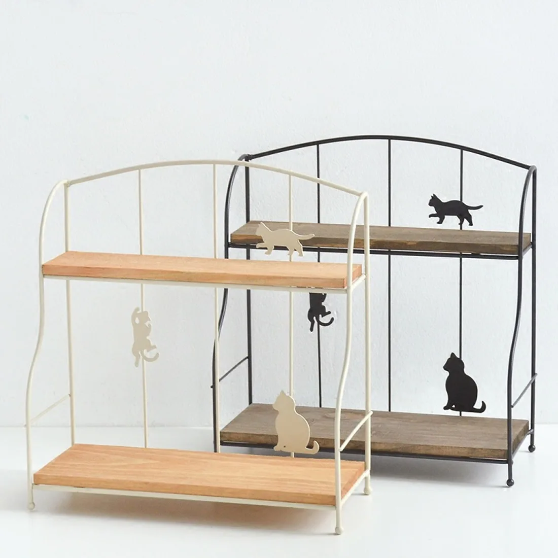 معرض ل لطيف Desigen مزدوجة تيير الحديد الرف أدوات مطبخ حامل المعيشة غرفة نوم صغيرة أشتات تخزين حامل رفوف منظم منزلي